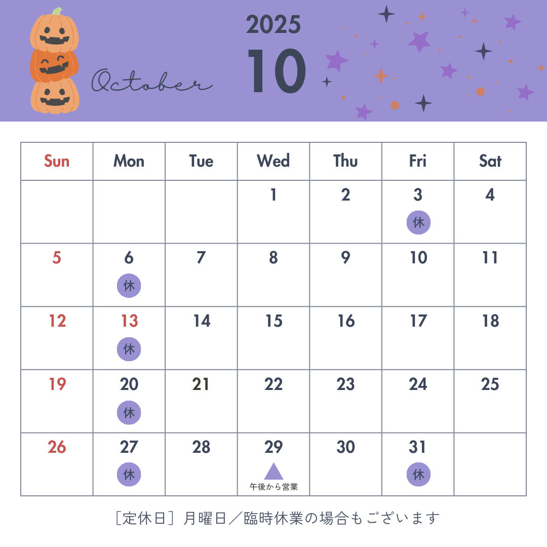 2025.9.27 【お知らせ】10月営業日のご案内