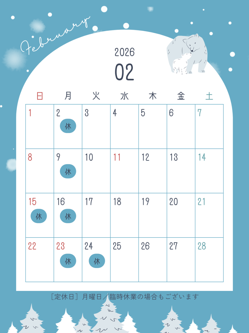 2026.1.27 【お知らせ】2月営業日のご案内