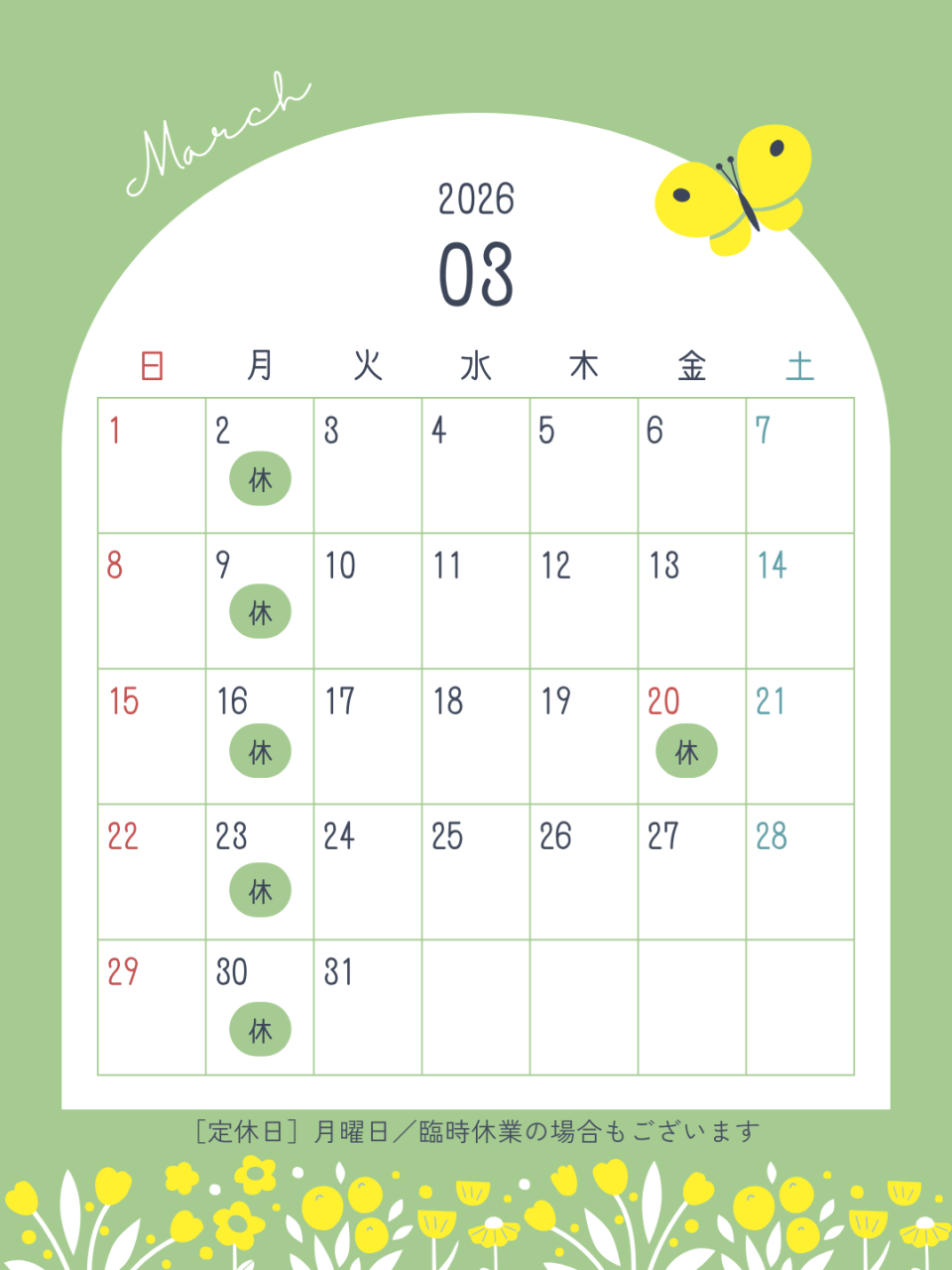 2026.2.25 【お知らせ】3月営業日のご案内